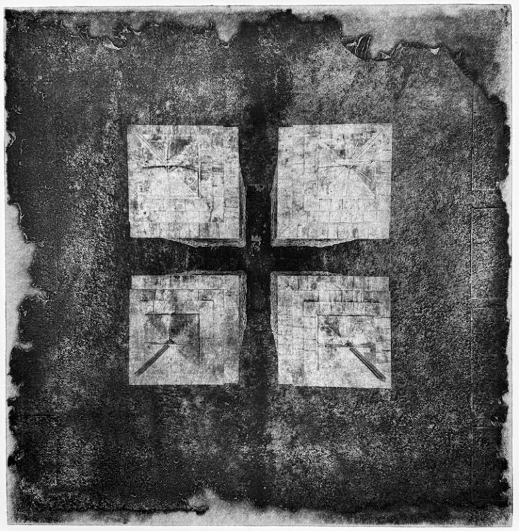 Wystawa Signa et Loca jest połączeniem dwóch światów – historii i sztuki. Stawiam tu pytania, czy miejsca ważne historycznie, ślady kultury materialnej mogą być inspiracją i zaczynem do artystycznej aktywności w postaci rejestracji fotograficznej, wideo za pomocą nowoczesnych środków technicznych, takich jak drony, a następnie przetworzenia i wytrawienia pozyskanych obrazów w technice heliograwiury.